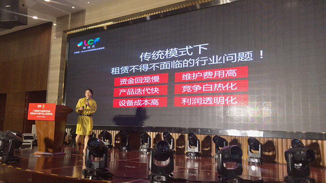 七月的南宁热火朝天,但却抵挡不住大家对舞美租赁新模式的热烈向往,此次会议钱柜QG777突破了舞美租赁行业的传统模式,带来舞美租赁界史无前例的新生态模式。钱柜QG777副总魏玉红女士作为钱柜QG777代表对该新生态模式进行了完美演绎,从产品、服务、资金投入、成本回收等方面进行问题分析并提出解决方案,精确的点明到了舞美租赁商们的行业痛点,成功引发全场行业人士共鸣。