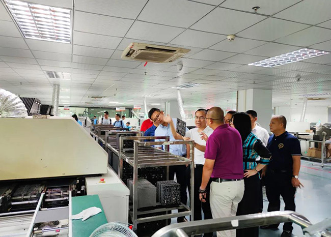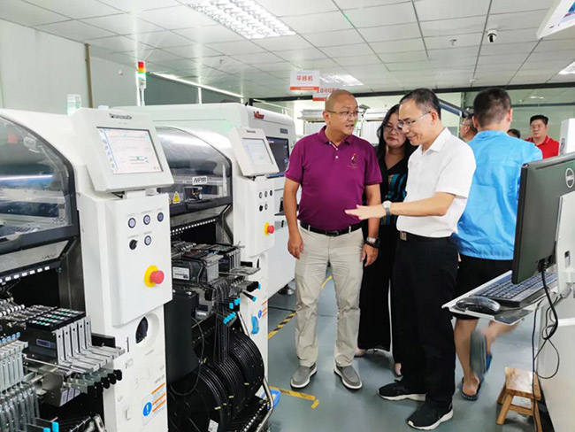最后, 领导一行人深入到智能生产车间进行了仔细认真的观摩,对产品的生产流程和钱柜QG777LED显示屏不同的产品造型、特性有了更直观的了解。同时对公司2020年布局的新基建项目“5G智能灯杆”,及主打互联网租赁的“云仓”的完整产业链模式做了深入了解;对于公司的创新项目及模式,领导们给予了高度认可和赞扬;称赞钱柜QG777未来能成为“世界的钱柜QG777”!