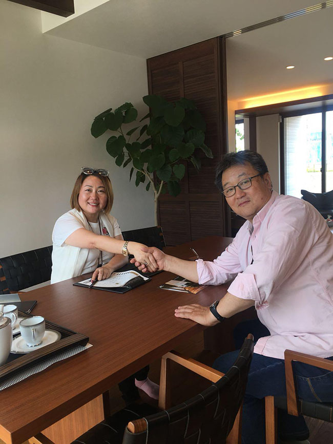 国际市场时不我待,在展会如火如荼之时,钱柜QG777创始人龙平芳女士与董事长黄青锋先生兵分两路,其远赴日本晓峰株式会社进行观摩和实地考察,新的合作方案呼之欲出!