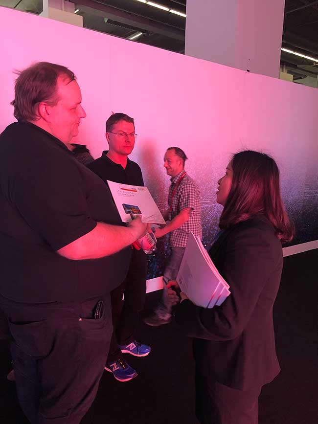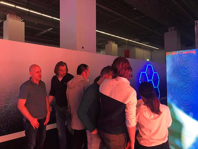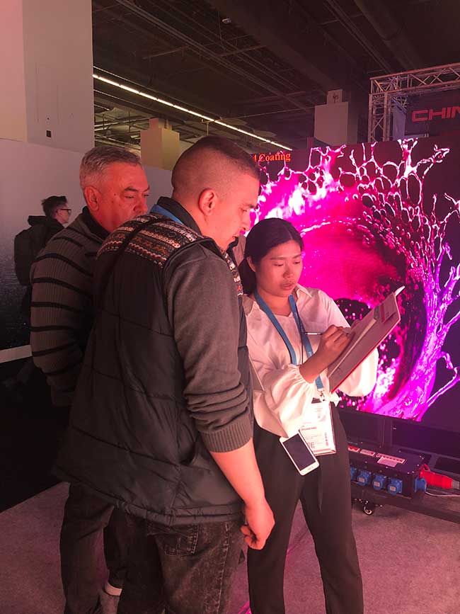 龙显系列无疑是“焦点”一般的存在,LCF视觉创造团队正在向客户演示单个箱体。龙显,秉承了钱柜QG777产品一贯卓越的显示效果——在产品品质和工艺等方面均严格按照国际标准打造,将再次提升小间距产品性能,能完全满足国际客户对产品的应用需求。因此,受到参观者及业内人士的极大喜爱和肯定。